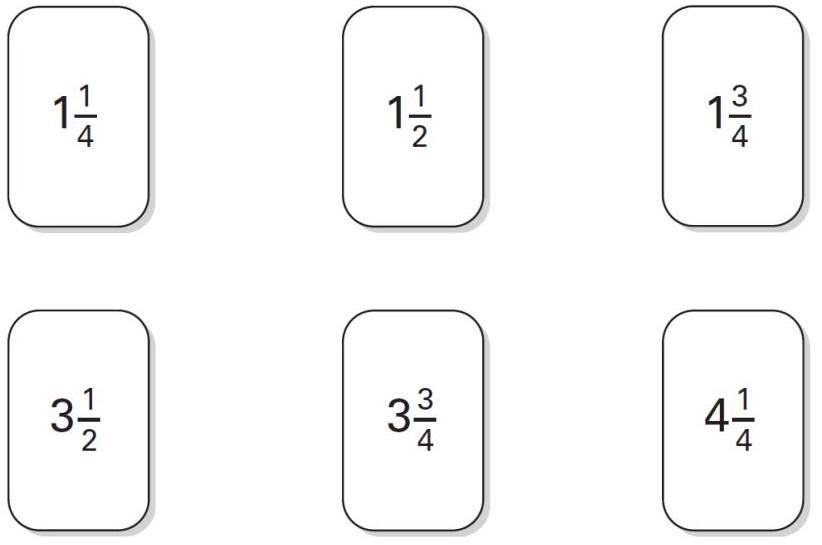 Look at the six mixed number fractions.