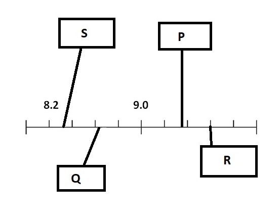 Which letter best shows the answer on the number line?6.4 × 1.5 = Choose your answer:ARBPCSDQENone of them.Your Answer: You did not answer this question.