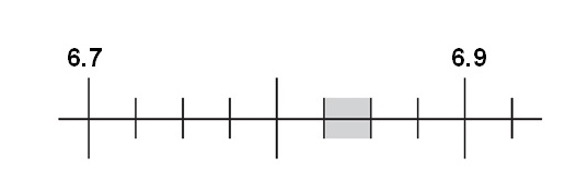 The number 6.74 belongs in the shaded region on the number line.True or False?Your Answer: You did not answer this question.