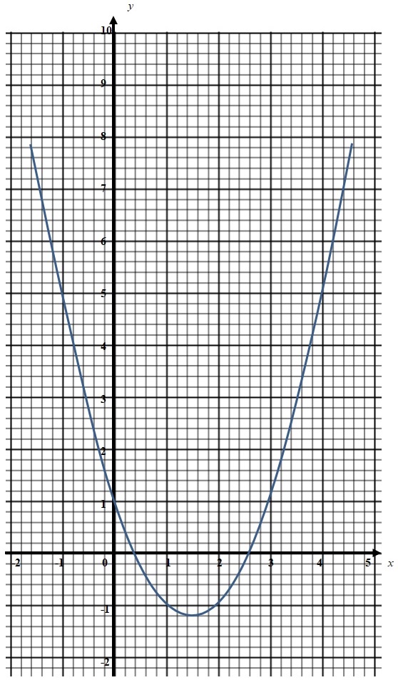 A sketch of part of the graph of `y = x2 − 3x + 1` is shown.