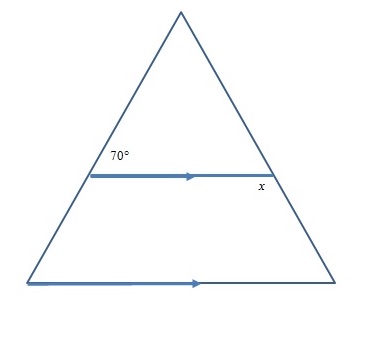 The large isosceles triangle is divided into a smaller isosceles triangle and a quadrilateral.