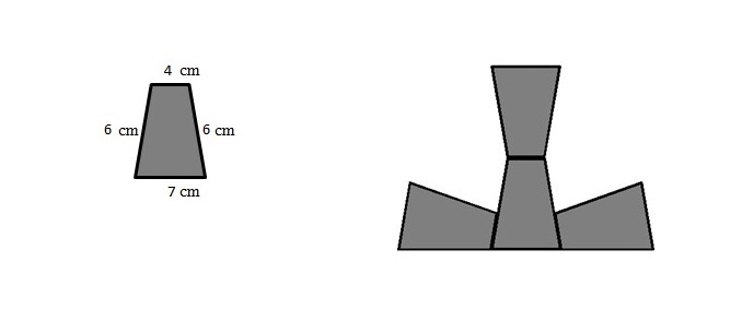 The isosceles trapezium shown has parallel sides length 4 cm and 7 cm.