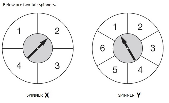Which spinner am I more likely to get a number greater than 1 on?Choose your answer:ASpinner YBSpinner XCNeither spinnerDBoth spinnersEYour Answer: You did not answer this question.
