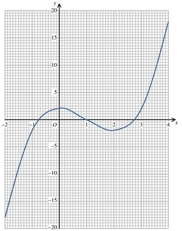 The graph of `y=x3 − 3x2 + 2` is drawn in the diagram.