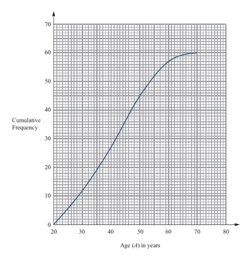 The cumulative frequency graph gives information about the ages of `60` teachers.