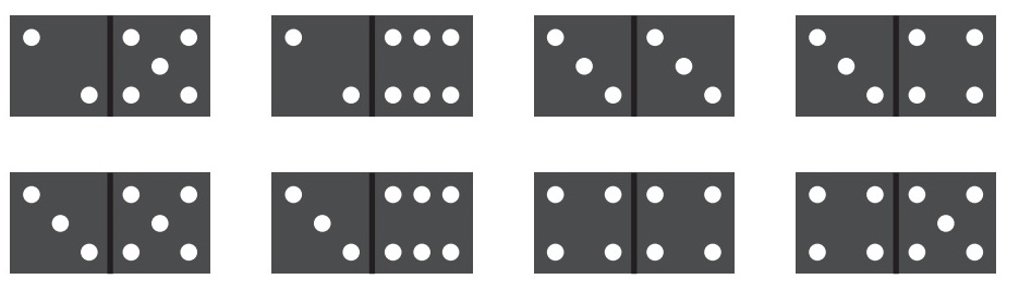 Helima takes at random `2` dominoes from the bag of `8` dominoes without replacement.