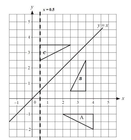 Triangle `B` can be directly mapped onto `C` by a single transformation.