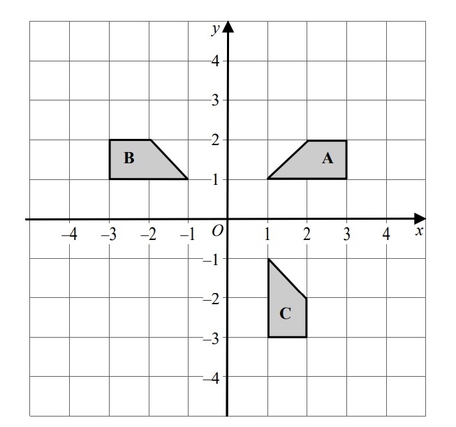 Describe the single transformation that maps `A` onto `C`.Your Answer: You did not answer this question.