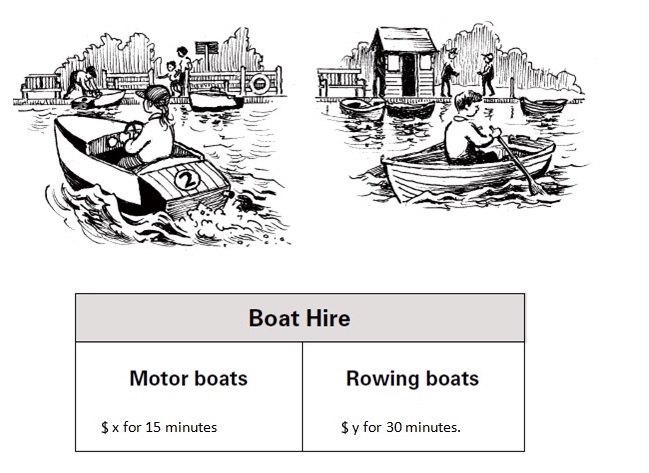 Find an expression for the total cost of hiring a motor boat for 3 hours.