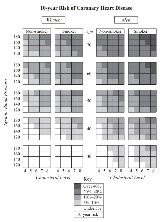 The diagram shows the risk of heart disease comparing men, women and smokers.