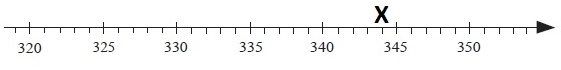Which diagram correctly shows the number three hundred and forty four on the number line?Choose your answer:ABCDNone of the answersE