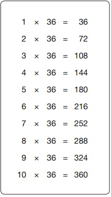 The diagram shows some of the 36 times table. Use the table or otherwise to help you answer the question.What is 288 รท 36?Enter your answer:Answer: