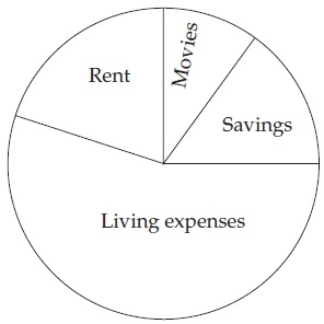 The pie chart shows how Jennifer spends her monthly wage.Approximately what % of her wage was invested in savings?Choose your answer:A5%B85%C38%D20%E65%
