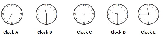 Which clock shows half past nine?